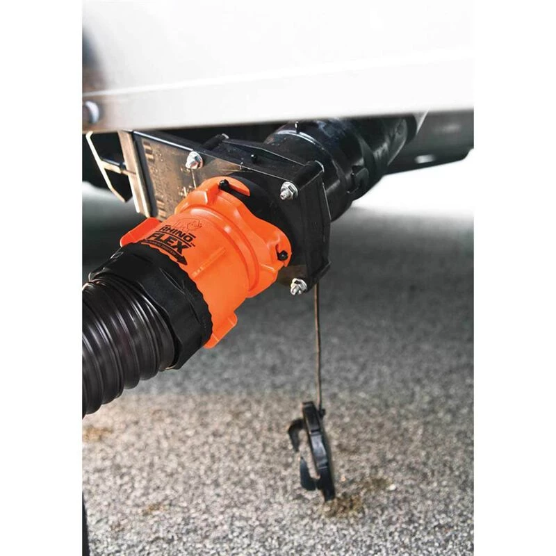 15′ RhinoFLEX sewer hose has pre-attached specially engineered fittings to make it even more convenient. At the RV end of the hose, there is a super-tough bayonet fitting with 4 prongs for a more secure fit. At the dump-station end, we’ve added an easily detachable 4-in-1 adapter for fitting to 3″ slip or 3″, 3-1/2″ and 4″ threaded pipe. It’s a ready-to-use kit made with the toughest hose you can buy. With pre-attached fittings.