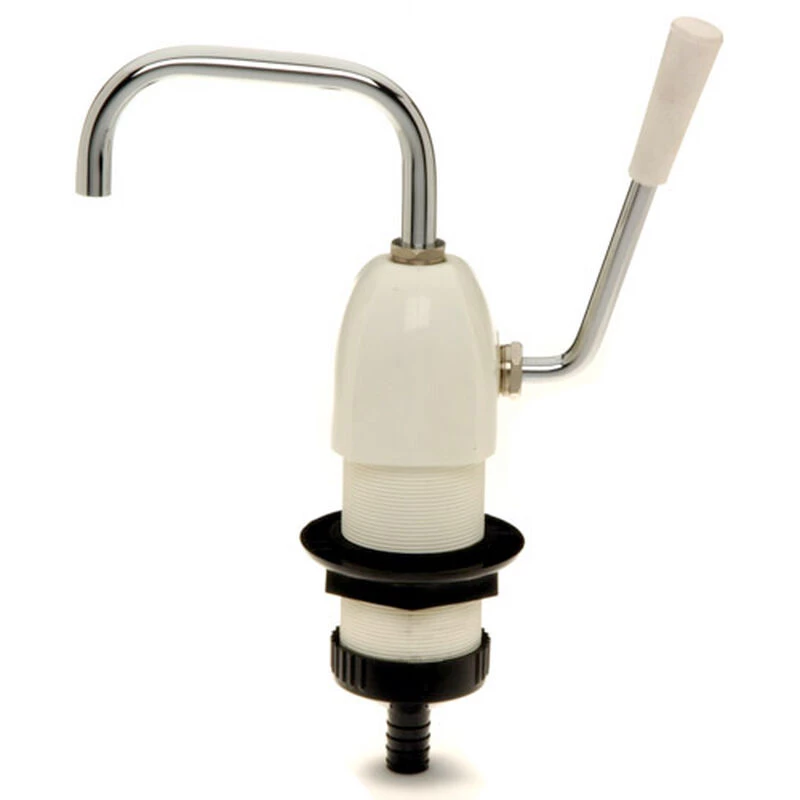 The FYNSPRAY Rocker Pump Faucet is standard equipment on thousands of boats. This practical, rocker-action pump can be used with salt or freshwater. Ultra-simple design disassembles quickly. Plastic body, chrome-plated handle and spout.