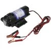 Self-priming diaphragm pump. Flow rates up to 17 Liters per minute. Pressure switch control, capable of pressures up to 2.8 Bar (40PSI). Ideal for cleaning leisure boats, fish boxes, anchor chains and dinghies. Includes strainer.