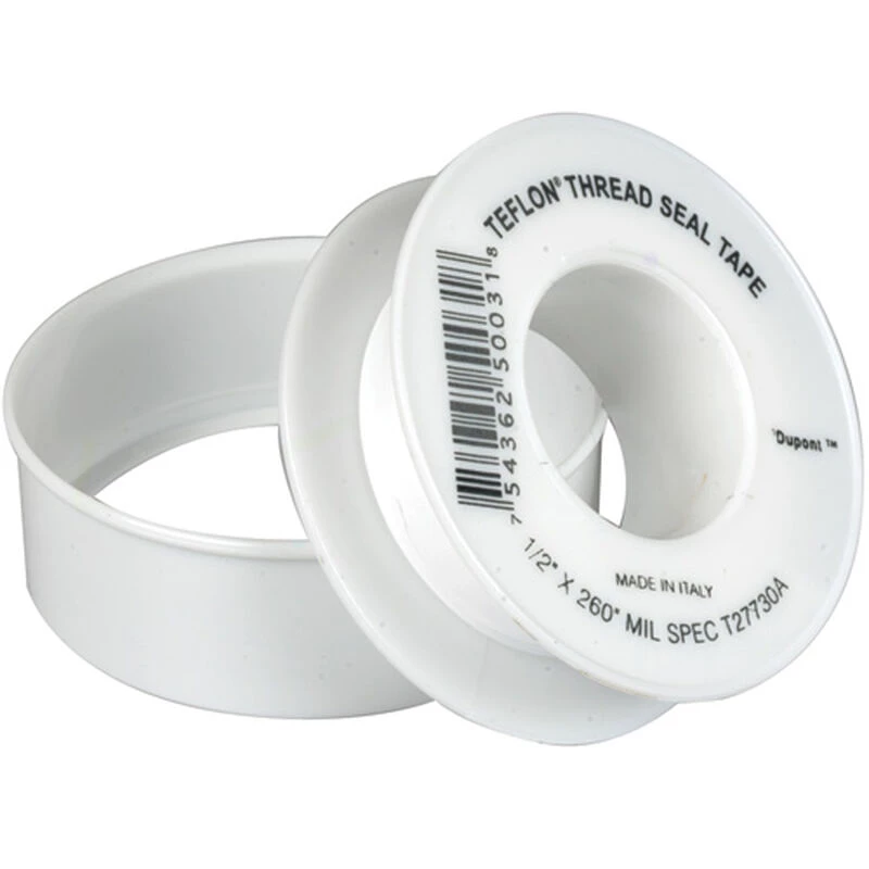 White sealing tape provides a clean, positive seal on threaded plumbing connections. Stretches and tears for easy application. 1/2″W x 260″L.