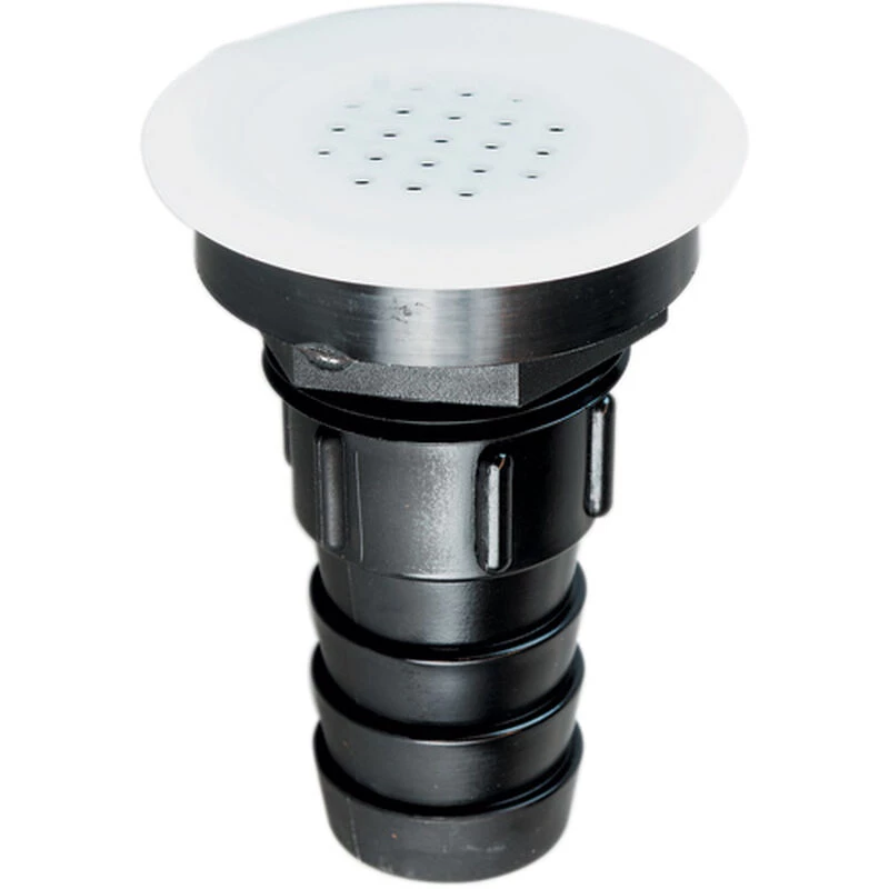 Flush head fits most showers and allows complete drainage. Offered with a screen or “plain” without a screen, with a choice of straight or elbow configuration. Barb on elbow models is angled 100°, which maximizes flow and reduces the chance of clogging compared to 90° elbow fittings.