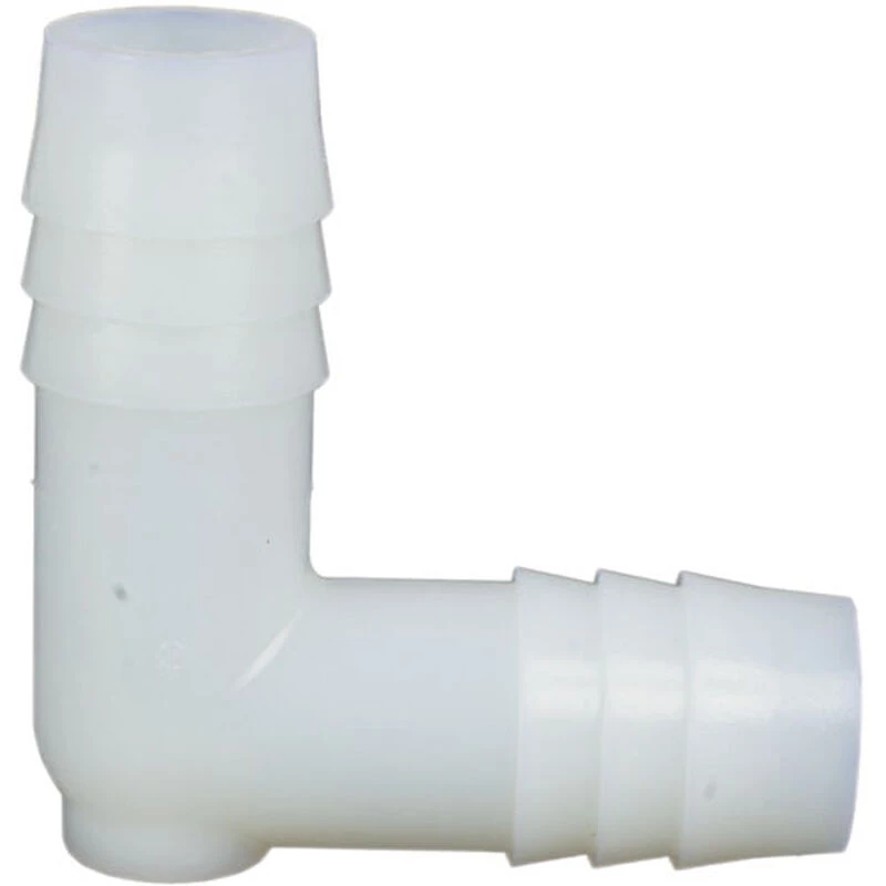 For joining two hoses with the same inside diameter, fittings like these Nylon Hose Elbows cost less than similar fittings made of Marelon or Bronze, but are for above-the-waterline use only.