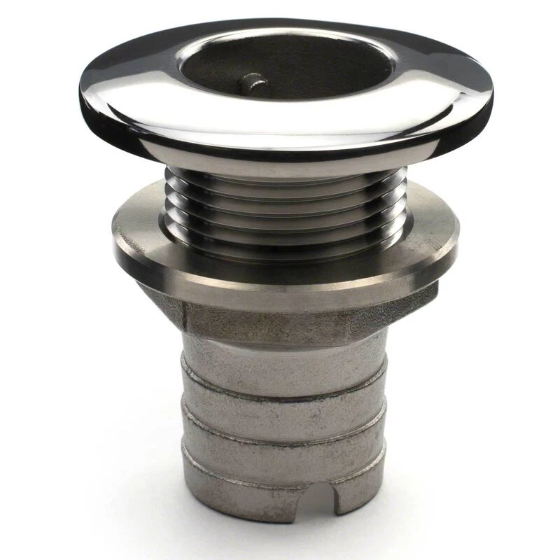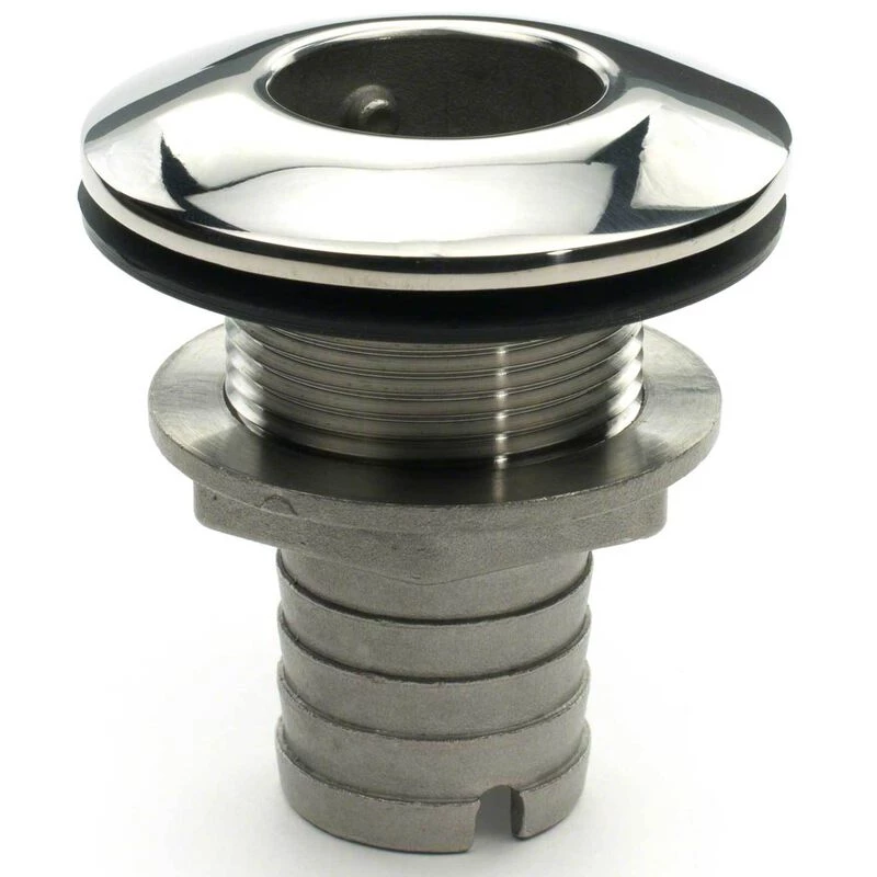 Stainless Steel Thru-Hulls with Straight Barb for Hose. Fittings include nut. For above the waterline installation on hulls up to 5/8″ thick. Good choice for scupper, sink drain and bilge overboard discharge.