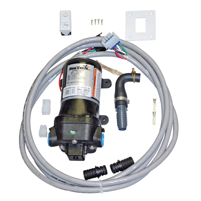 For installation with EasyFit ECO Electric Macerating Head, the Raw Water ECO Kit utilizes externally drawn water and a dedicated pump (supplied) to flush. Operates on 12V DC.
